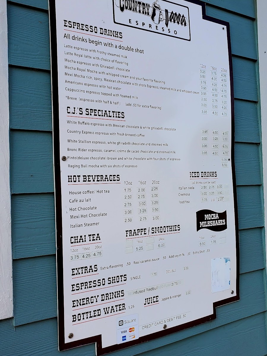 The drink offerings are equally impressive, featuring everything from classic House Coffee and Café Au Lait to unique creations like the Raging Bull Mocha and Mexi Mocha. Many customers rave about the Iced Brevee with Salted Caramel Syrup, which Brandy Juarez describes as "delicious" and perfect for a warm day. Meanwhile, Tyler C can’t get enough of the invigorating infused Red Bull, showcasing that Country Java caters to a diverse palate.